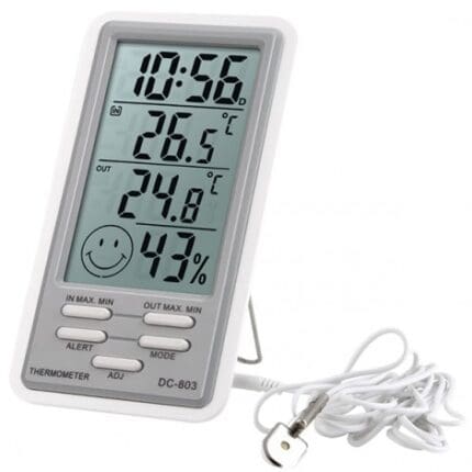 DC-803 TERMOMETRE HİGROMETRE ÖZELLİKLERİ – DC-803 sıcaklık ve nem ölçerin geniş LCD ekranı bulunmaktadır. Bu sayede ekrandaki değerleri rahatlıkla görebilirsiniz.