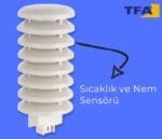 – TFA 35.1077 Stratos hava istasyonu cihazı; dış mekan sıcaklığını, nemini, yağmur miktarını ve rüzgar hızını harici sensörlerden gösterge istasyonuna iletir.