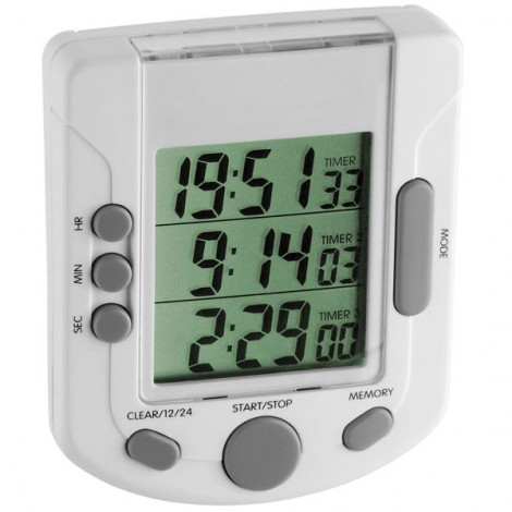 TFA 38.2020 kronometre; 3 adet zamanlayıcı ve bu zamanlayıcıları eş zamanlı çalıştırabilme özelliğine sahiptir. Mıknatıs özelliği ile metal yüzeylere sabitlenebilir.